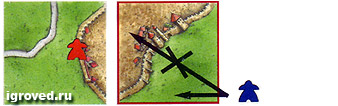 Здесь синий игрок может выставить только крестьянина, так как в имеющемся городе уже стоит чужой рыцарь.