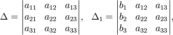 (i-ый столбец матрицы системы заменяется столбцом свободных членов).