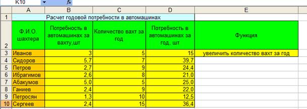 Рисунок 2 Вид таблицы «Расчет годовой потребности в автомашинах» (таблица 2)