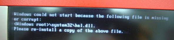 Подивитися ще раз уважно на помилку. Назва файла може бути hal.dll або hall.dll (з двома "ll"). Другий варіант говорить про те, що на комп'ютері вірус.