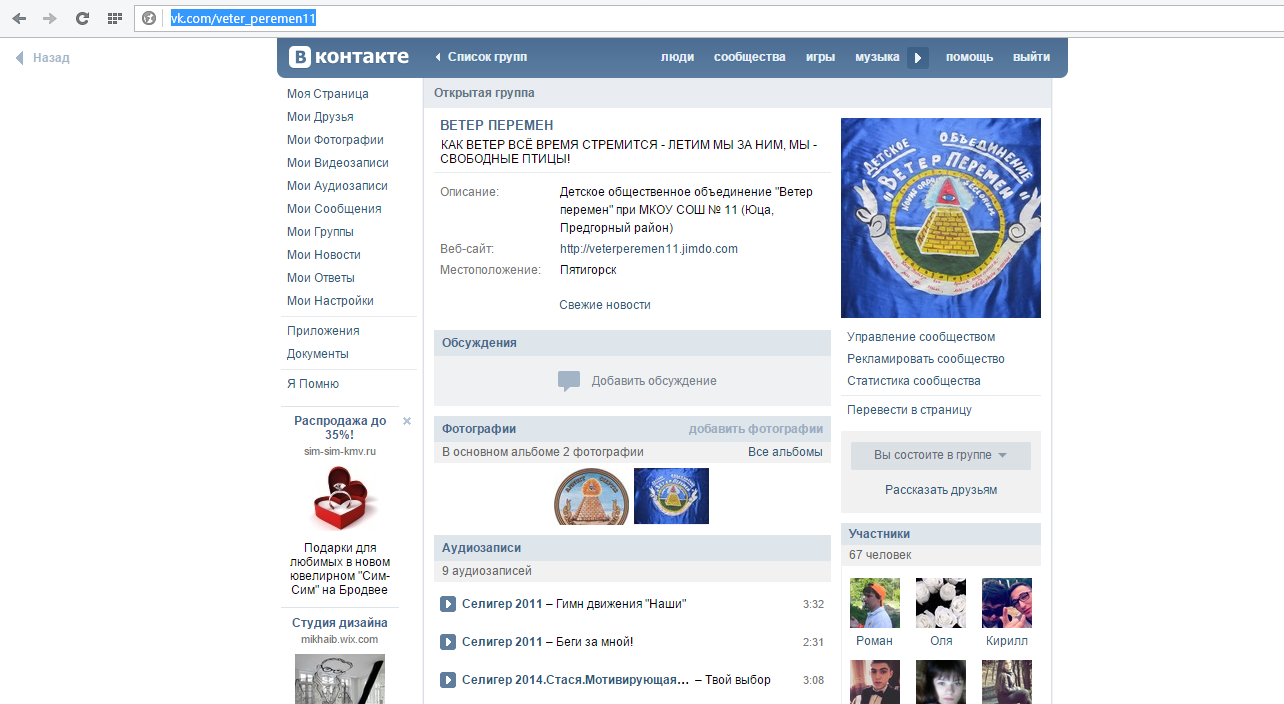 В рамках реализации социального проекта «Открытая школа» создано сообщество детского объединения «Ветер перемен» в социальной сети «В контакте» http://vk.com/veter_peremen11