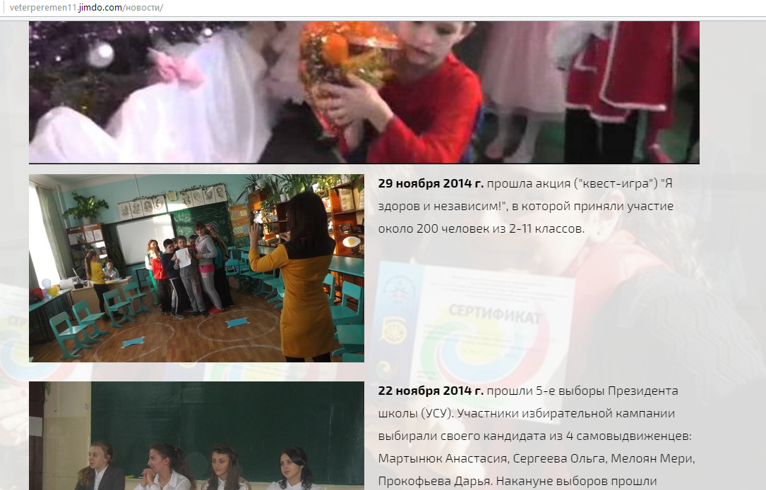Новостная лента на сайте детского объединения «Ветер перемен» http://veterperemen11.jimdo.com