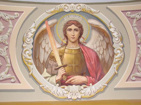Архангел Михаил-Покровитель земли Русской Архангел Михаил - архистратиг (по-гречески - верховный военачальник), полководец воевода верных Богу ангелов, победоносный враг сатаны, победитель зла. Он считается покровителем воинов, бьющихся за правое дело. Само имя Михаил означает по-древнееврейски "кто как Бог" И одно это уже говорит, сколь высоко он почитается Святой Церковью. Он низринул диавола и всех павших духов с Неба. Не лишил архангел Михаил своего заступничества нас и нашего Отечества, когда спас Новгород Великий от татарского хана Батыя в 1239 г. не случайно на многих воинских знаменах на Руси изображали Михаила как архистратига Божиего воинства. Вот уже более тысячи лет Архангел Михаил является покровителем земли Русской. Однако следующее упоминание о Михаиле в пророчестве Даниила заставляет думать о нем как о земном человеке. В связи с описанием походов "презренного" царя (в Откровении Иоанна ему соответствует образ "зверя из бездны"), Даниил говорит: "И восстанет в то время Михаил, князь великий, стоящий за сынов народа твоего." Дан. 12:1.