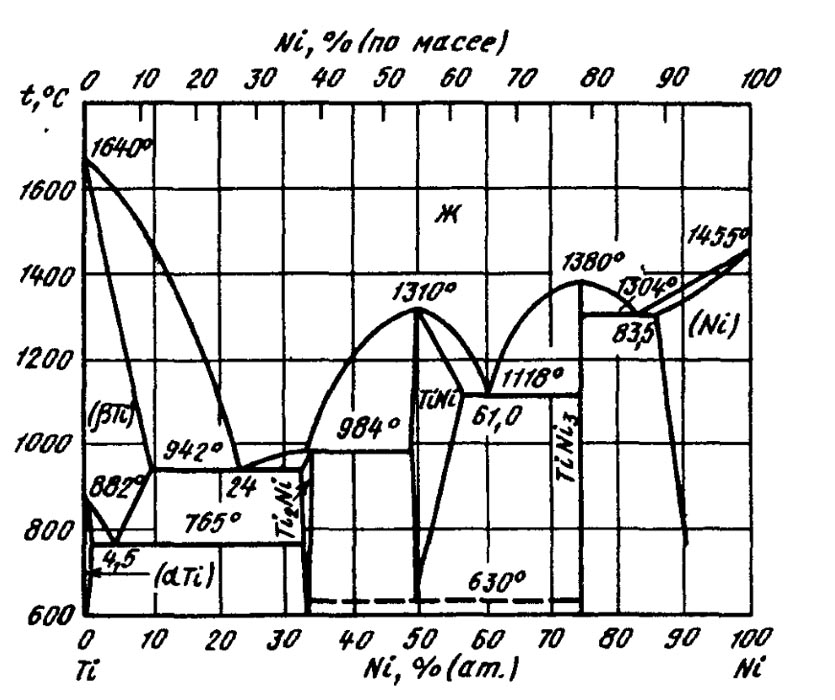 Диаграмма состояния системы никель-титан (Ni-Ti)