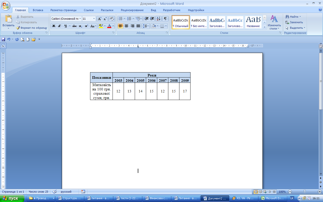 | Визначити середньорічний рівень збитковості, якщо маємо дані про збитковість страхових сум за 7 років: