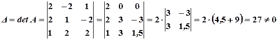 3. Из первого столбца вычтем удвоенный второй, а из третьего - умноженный на