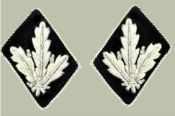 Войска СС (Waffen SS) Знаки различия званий высших руководителей Высшие руководители общественной организации СС (Allgemeine-SS) носили звания от СС-бригадефюрер (SS-Brigadefuehrer) до CC-райхсфюрер (SS-Reichsfuehrer) включительно. Последнее звание за все время существования СС имел в Германии только один человек - Генрих Гиммлер. Скорее, это должность - государственный руководитель СС. Звания высших руководителей (скажем так для простоты изложения материала - генералов) войск СС несколько отличались от званий в Allgemeine-SS. Если члены общих СС именовались просто, например, СС-бригадефюрер (SS-Brigadefuehrer), то к званиям членов СС, которые занимали высшие руководящие должности в органах безопасности (полиции) кроме общеэсесовского звания добавлялось, например, СС-бригадефюрер унд дер генеральмайор дер полицай (SS-Brigadefuehrer und der Generalmaior der Polizei). А вот высшие командиры войск СС именовались, например, СС-бригадефюрер унд дер генеральмайор дер ваффен СС (SS Brigadefuehrer und der Generalmaior der Waffen-SS). Впрочем, случались и исключения. Например, руководитель СД В.Шеленберг носил чин СС-бригадефюрер унд дер генеральмайор дер ваффен СС, хотя в войсках СС не служил ни единого дня. А вот командир 4-й дивизии Карл Пфеффер-Вильденбрух носил чин СС-группенфюрер и генеральлёйтнант полиции. Встречаются высшие руководители как в войсках СС, так и в полиции, которые носили только эсэсовское звание. Вторым существенным моментом в знаках различия генералов войск СС является то, что до мая 1942 года в системе званий СС не было звания СC-оберстгруппенфюрер (SS-Oberstgruppenfuehrer und der Generaloberst). С введением этого звания существенно изменились и знаки различия званий в петлицах. Внешне это заметно по рисунку дубовых листьев. До этого времени листья были изогнутые. С мая 1942 листья прямые. До мая 42 бригадефюрер имел в петлицах по два листа как и оберфюрер, но с добавлением звездочки. Три листа имел группенфюрер. С мая 42 бригадефюрер имеет три листа без звездочки, а группенфюрер три листа с добавлением звездочки. Я обращаю внимание читателя на это потому, что вследствие незнания этого момента нередко (в том числе и в серьезных изданиях) допускаются грубые ошибки как в Генералы СС носили знаки различия званий в обеих петлицах. На снимке слева: петлицы СС-бригадефюрера с мая 1942г. Обратите внимание - листья прямые. До мая 1942 три листика означали чин СС-группенфюрера, но они были изогнутые.
