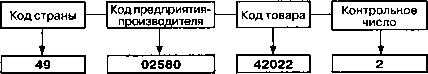 Штриховой код (штрих-код или бар-код) представляет собой подготовленное при помощи компьютера графическое изображение (полоски или штрихи) некоторой последовательности цифр (и букв). Цифры, на основании которых разрабатывается указанное изображение, называются цифровым эквивалентом штрихового кода. В виде штрихов (графики) можно представить последовательность любых знаков (цифр). Компьютер из знаков подготовит изображение, понятное автоматическим устройствам. Программы получения изображения штрихового кода на основании заданных знаков называются генераторами штрихового кода. Штриховые коды наносят на упаковку и этим указывают цифровую ссылку на производителя и наименование товара. Порядок расшифровки штрихового кода: Первые 3 цифры называются префиксом EAN и обозначаются национальные организации. Ассоциация Автоматической идентификации ЮНИСКАН / EAN РОССИЯ как член EAN International является единственной организацией товарной нумерации - представителем EAN International на территории России. Префиксы 460-469 в коде EAN-13 присвоены ЮНИСКАН / EAN РОССИЯ - это означает, что предприятие зарегистрировано в ЮНИСКАН/EAN РОССИЯ, а вовсе не то, что предприятие находится на территории России. В национальную организацию России может вступить любое предприятие, например, находящееся на территории Германии, Казахстана, Украины и т.д., при условии, что оно имеет свое представительство в Российской Федерации. Следующие 9 цифр содержат номер предприятия, зарегистрированного внутри национальной организации, и номер товара. Структура 9 знаков, приходящихся на номер предприятия и номер товара, определяется непосредственно национальной организацией, например: Ø 5 - предприятие / 4 - товар, Ø 6 - предприятие / 3 - товар, Ø 7 - предприятие / 2 - товар и др. В настоящее время ЮНИСКАН / EAN РОССИЯ определил следующую структуру: 6 цифр - номер предприятия, 3 цифры - номер товара.