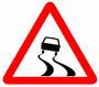 Описание: Участок дороги с повышенной скользкостью проезжей части. Устанавливается в н. п. за 50—100 м, вне н. п. за 150—300 м, знак может устанавливаться и на ином расстоянии, но при этом расстояние оговаривается таб. 8.1.1 “Расстояние до объекта”. Особенности: В целях предотвращения заноса на участках, обозначенных знаком, необходимо двигаться с пониженной скоростью, без резких ускорений и торможений, плавно вращая рулевое колесо, так как коэффициент сцепления шин с покрытием в силу обстоятельств очень мал.