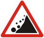 Описание: Участок дороги, на котором возможны обвалы, оползни, падение камней. Устанавливается в н. п. за 50—100 м, вне н. п. — за 150—300 м, знак может устанавливаться и на ином расстоянии, но при этом расстояние оговаривается таб. 8.1.1 “Расстояние до объекта”. Особенности: Водителю необходимо повысить внимание и в случае возникновения обвалов, оползней и т. п., в зависимости от конкретной обстановки, следует либо остановиться, либо наоборот, увеличить скорость и проехать опасный участок.