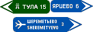 | Направления движения к пунктам маршрута. На знаках может быть указано расстояние до обозначенных на нем объектов (км), нанесены символы автомагистрали, аэропорта и иные пиктограммы.