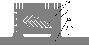 Горизонтальная разметка может быть постоянной или временной. Постоянная разметка имеет белый цвет, кроме линий 1.4, 1.10 и 1.17 желтого цвета, временная - оранжевый цвет
