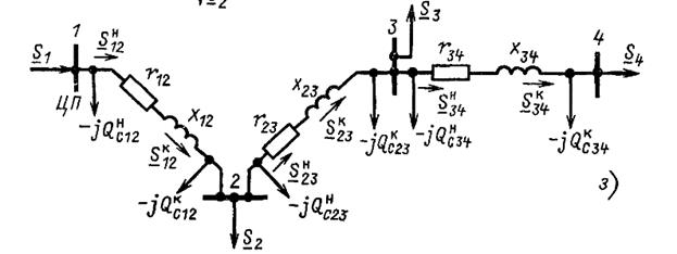 Ход работы. Расчет разомкнутой сети при заданных мощностях нагрузки и напряжении источника питания
