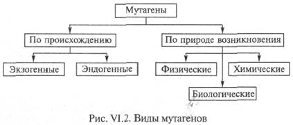 Причинами, вызывающими мутации (нарушения структуры генов, структуры хромосом или изменения их числа), могут быть различные факторы (рис. VI.2). Их обозначают как мутагены (от лат. mutatio + genos — происхождение).