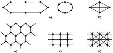 Сетевидная топология. На рис.3 показаны разновидности сетевидной топологии. (а; г)