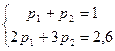 Решив эту систему, найдем р1=0,4; р2=0,6. Ответ: р1=0,4; р2=0,6.