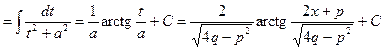Учитывая, что второй интеграл, как показано выше, находится по формуле (*), окончательно получаем: III. Покажем теперь в общем виде, как интегрируются простейшие дроби четвертого типа: IV. Выделим в числителе производную от квадратного трехчлена в знаменателе: