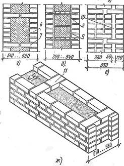 Рис. ХХ. Облегченные кладки кирпичных стен: