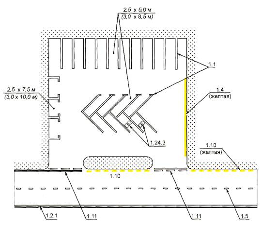 Рисунок В. 13 - Пример нанесения разметки на площадках, предназначенных для стоянки транспортных средств