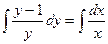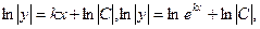 откуда y -ln| y |=ln| x |+ C 1. Для удобства потенцирования представим y в виде y = ln ey и постоянную интегрирования C 1 в виде C 1= - ln| C |, C ¹ 0. Имеем ln ey -ln| y | = ln| x |-ln| C |. Потенцируя, получим