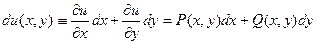 называется уравнением в полных дифференциалах, если его левая часть является полным дифференциалом некоторой функции u (x, y):