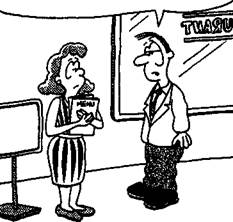 Я обычно даю на чай очень мало, поэтому я хотел бы попасть к самой грубой из ваших официанток, чтобы не испытывать чувства вины.