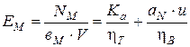 Значения ЕМТ = Ка и EМВ = аN × u соответствуют удельному расходу энергии непосредственно самой машиной на тяговые процессы и на привод рабочих органов через ВОМ. Пропорционально энергозатратам будет изменяться и расход топлива. Номинальная мощность двигателя трактора в расчете на одну машину NHМ с учетом формулы (3.15) определяется так: