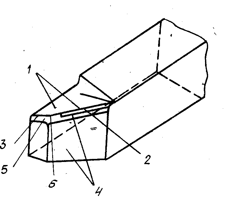 Вопросы: - классификация резцов. Резцы токарные, строгальные, долбежные и др; - назначение геометрических параметров токарных резцов; - современные конструкции токарных резцов: с механическим закреплением пластин твердого сплава, с СМП, с поликристаллами СТМ; - современная методика выбора режущих инструментов для оснащения технологического процесса токарной обработки. Конструктивные, режущие элементы и геометрические параметры резца приведены в ГОСТ 25762-83 и ГОСТ 25751-83. Элементы лезвия резца (рис.1): Передняя поверхность лезвия Задняя поверхность лезвия Режущая кромка К (2 и 3). Кромка лезвия инструмента, образуемая пересечением передней и задней поверхностей; Главная режущая кромка К (2). Часть режущей кромки, формирующая большую сторону сечения срезаемого слоя; Вспомогательная режущая кромка К (3). Часть режущей кромки, формирующая меньшую сторону сечения срезаемого слоя; Главная задняя поверхность Вспомогательная задняя поверхность Вершина (6), участок режущей кромки в месте пересечения двух задних поверхностей;