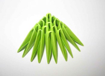 Приближается Новый 2013 год - год змеи. Каждому хочется, чтобы в доме был хотя бы один символ Нового года. Если у Вас есть небольшие познания техники модульное оригами, то собрать змею из модулей не составит большого труда. Пусть модульное оригами змея принесет удачу и счаcтье в Новом году. Модульное оригами "Змея" состоит из треугольных модулей: зеленых - около 1200 модулей, желтых - 800, красных - 146, розовых - 150, черных - 2 модуля. Если змея в будущем не будет разбираться, то модули при сборке садите на клей ПВА. 1. Сборка головы змеи. 1 ряд - 1 зеленый (далее - з) модуль