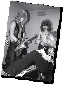 У Майкла Шенкера (на тот момент он играл в UFO) во вдохновенной позе на домашнем концерте Panic Мы с Дейвом начали говорить о том, чтобы играть вместе и возможно создать настоящую группу, такую, чтобы выбила дурь, которую мы видели на местных вечеринках. В качестве гитариста Дейв пригласил своего друга по имени Рик Солис, у которого была прекрасная Gibson Flying V. Как и я, Рик обучался боевым искусствам, поэтому мы сразу нашли общий язык. Рик был также первым начинающим рокером из тех, что я видел, и отчасти был на него похож, он был чем-то средним между Винни Винсентом и Полом Стэнли. Это было не случайно. Рик был одним из парней с врожденным пониманием имиджа - он обожал футболки без рукавов, длинные волосы и странные коллекции ювелирных изделий рок-звезд. У него также был огромный нос и темная кожа, что придавало ему экзотическую средиземноморскую внешность, и он был одним из самых волосатых парней, что я когда-либо встречал. Он сочетал хорошее с плохим - волосяной покров на груди, похожий на шерсть медведя (эй, в 70-х это считалось вершиной мужественности) и сросшиеся брови, простиравшиеся с одной стороны головы до другой. Рик был первым парнем, из тех, что я встречал, который был полон решимости хорошо играть и стать рок-звездой. Мы обучили друг друга нескольким песням, начиная от 'Fire' Джимми Хендрикса до композиций из каталога Judas Priest и всего остального, что звучало по-нашему мнению интересно. Как и я, Рик все еще развивал свой вкус к музыке. Вскоре он вел себя в манере, которую можно было назвать странной и неприемлемой, что привело не только к его исключению из группы, но, насколько я могу предполагать, к преждевременной смерти (Рик часто ездил, будучи пьяным в хлам, и погиб, разбившись на мотоцикле спустя несколько лет). После смерти Рика Дейв и я занялись созданием новой группы. Первым к нам присоединился гитарист по имени Том Квеке, мой друг из вечерней школы. Том происходил из семьи с тремя братьями. Старший работал на правительство в сфере национальной безопасности; здоровенный, крепкий парень. О среднем брате я не слишком много слышал, он был белой вороной в семье. Ну и последним братом был Том, который был белой вороной, последовавшей по правильному пути. По крайней мере, пытавшейся. По правде говоря, он был немного посредственным гитаристом, но нам больше и не требовалось, потому что он играл на ритм-гитаре; я взял на себя партии соло. Следующим в состав вошел Боб Эванс, бас-гитарист, напомнивший персонажа Джуниора из деревенского телешоу Hee Haw. Он был грузный, с короткой стрижкой и челкой, и все время носил комбинезон. Бобби выглядел… как простачок. Но, по правде говоря, он был сообразительным ребенком. Как и его отец, который был опытным звукорежиссером, построившим невероятные звуковые кабинеты для дома. Эти вещи были не просто басовыми кабинетами; они были похожи на басовые корпуса из Королевского Альберт-Холла или что-то вроде того. Мы играли с этим чуваком, и у меня были маленькие кабинеты, а Бобби заводил эти огромные кабинеты в восемь футов высотой и ударял первую басовую ноту “БУАУУУУУУУУ” и выносил всю округу. У Бобби имелись деньги и машина, поэтому, естественно, мы были счастливы иметь его в своей группе. В тот момент все, что нам было нужно, так это вокалист – я еще не рассмотрел возможность, что я могу сам справиться с микрофоном, и тогда 