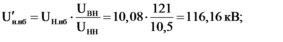 Где UВН, UСH, UНH – соответственно номинальные напряжения обмоток ВН, СН и НН трансформатора. 2) Производятся расчеты режимов (режимы наибольших, наименьших нагрузок, послеаварийные режимы), из которых определяют напряжения на шинах НН UН иСН UС. Затем по этим напряжениям производят пересчет и находят напряжения, приведенные к стороне ВН: