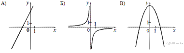 1) 2) 3) 4) №12. Установите соответствие между графиками функций и формулами, которые их задают. А Формулы 1) №13. На одном из рисунков изображена гипербола. Укажите номер этого рисунка. 1) №14. Установите соответствие между функциями и их графиками.