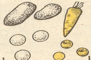 1 - ножи: а - коренчатый, б - карбовочный, в - для чистки овощей; г, д - для удаления глазков; 2 - терки для овощей; 3 - приспособления для протирания овощей; 4 - устройство УНЗ для нарезки зеленого лука, укропа, сельдерея; 5 - контейнеры для хранения очищенных овощей; 6 - бачки для сбора отходов с тележкой для их перевозки; 7 - пневматическое приспособление для дочистки картофеля Виды нарезки овощей: