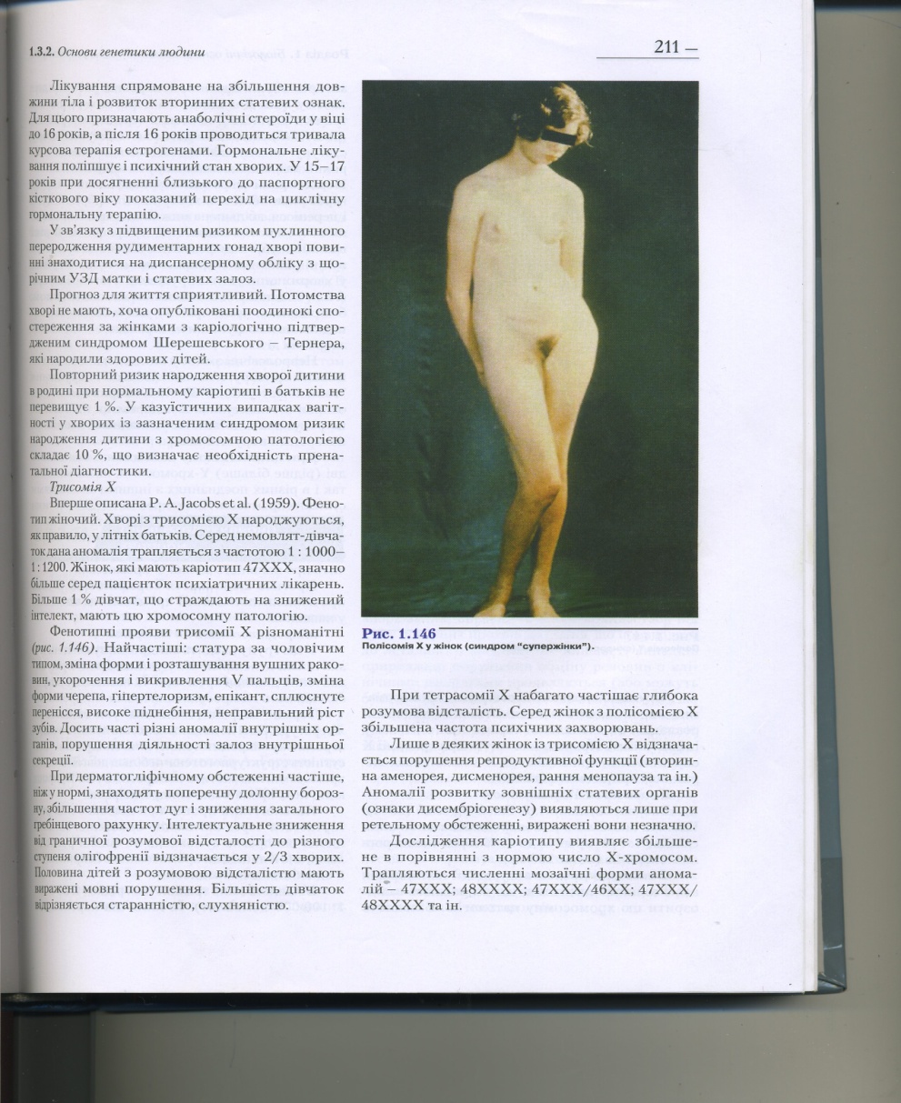 10. Аномальний гермафродитизм тварин і людини Гермафродитизм – наявність в одного організмі чоловічих і жіночих статевих органів (один сім'яник і один яєчник, наявність чоловічих і жіночих недорозвинених зовнішніх статевих органів, присутність у паренхімі сім'яника паренхіми яєчника і, навпаки). Види гермафродитизму: Ø природний (у безхребетних); Ø аномальний − у людей і вищих тварин (частота виникнення гермафродитів у домашніх тварин, найбільша у свиней і кіз – до 1,5 %). Причина виникнення гермафродитизму: зміна активності гормональної секреції. Гени чоловічої статі знаходяться в У-хромосомі, а гени жіночої статі – в Х-хромосомі. Однак, в невеликій кількості гени чоловічої статі є в Х-хромосомі і навіть в аутосомах, водночас гени жіночої статі є в чоловіків. У нормі диференціація статі у людини зумовлюється статевими гормонами ендокринних залоз і зародкової гонади. Рівень гормональної секреції контролюється балансом генів. Переважання генів чоловічої статі призводить до підвищення секреції чоловічих статевих гормонів – андрогенів і формування чоловічої статі, а переважання генів жіночої статі – до підвищення секреції жіночих статевих гормонів – естрогенів і формування жіночої статі. Однак трапляються випадки, коли під час ембріонального розвитку у зародковій гонаді з генотипом XX або XУ починає посилено діяти відповідна меншість генів чоловічої або жіночої статі, тобто відбувається зміна активності гормональної секреції. Це і призводить до розвитку гермафродитних форм.