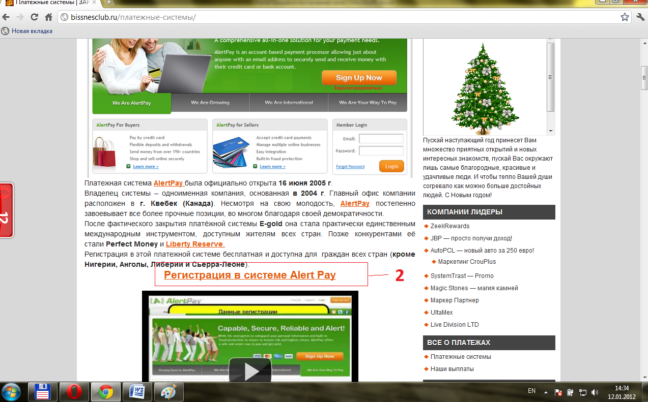 В результате выполненных действий у нас откроется страница системы Alert Pay. Выполняем пункт 2- нажимаем на ссылку регистрация в системе Alert Pay.