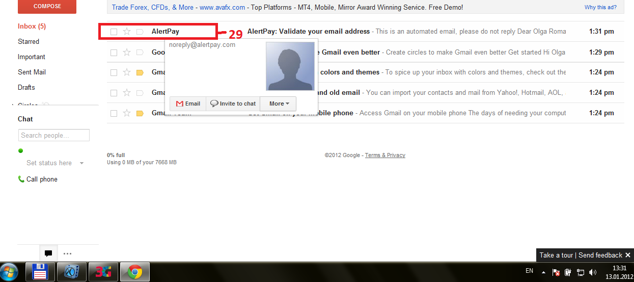 Пункт 29 – заходим на электронную почту и открываем сообщение с Alert Pay. В результате у нас появится следующие окно: