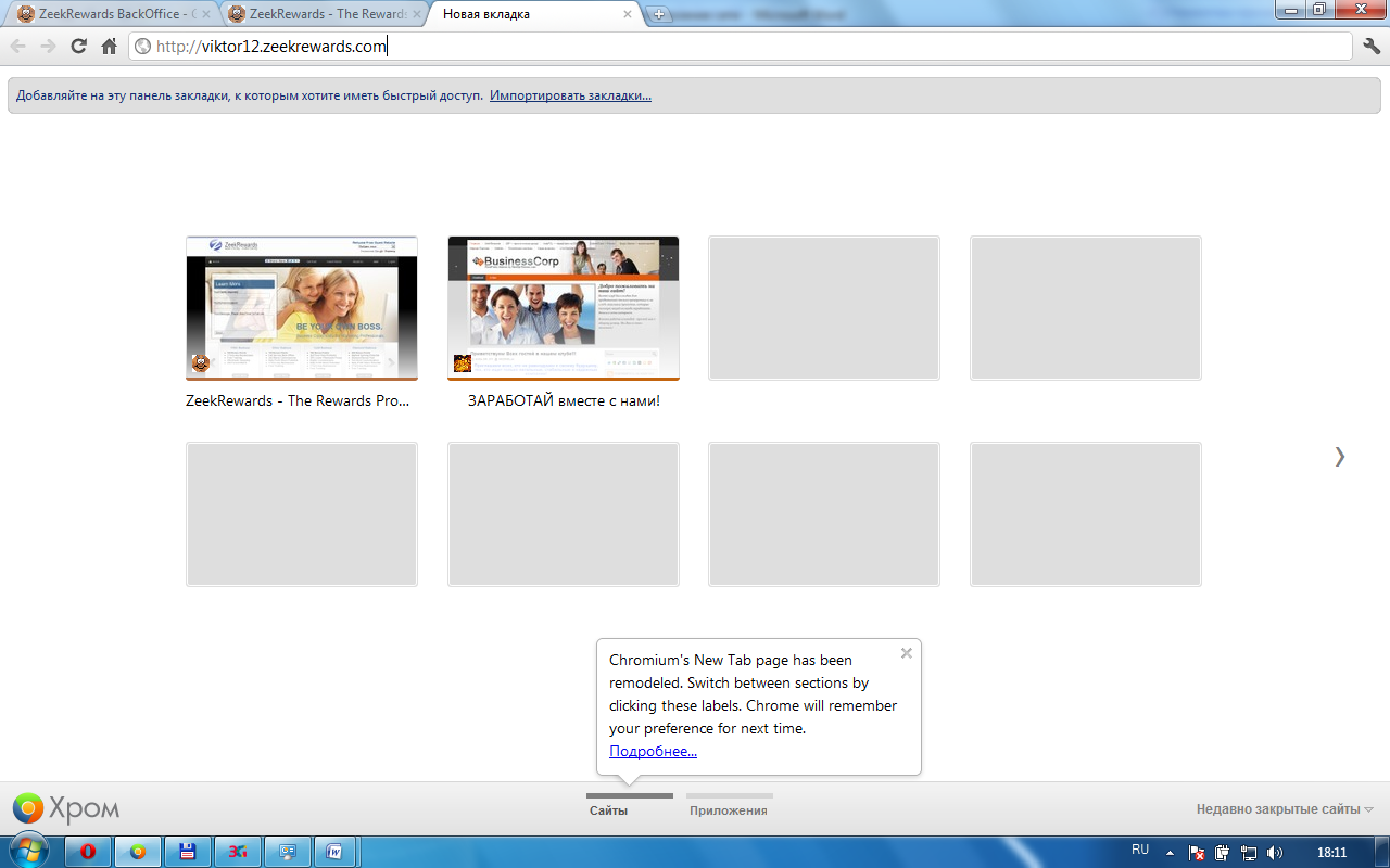 Затем мы создаем свою страницу, но что бы войти в сеть вам нужно будет ввести мои данные итак преступим. Для этого открываем новую вкладку своего интернет - браузера и копируем следующую ссылку в адресную строку http://samirka333.zeekrewards.com и нажимаем Inter, ниже показан скрин (в данном случае интернет – браузер хром):