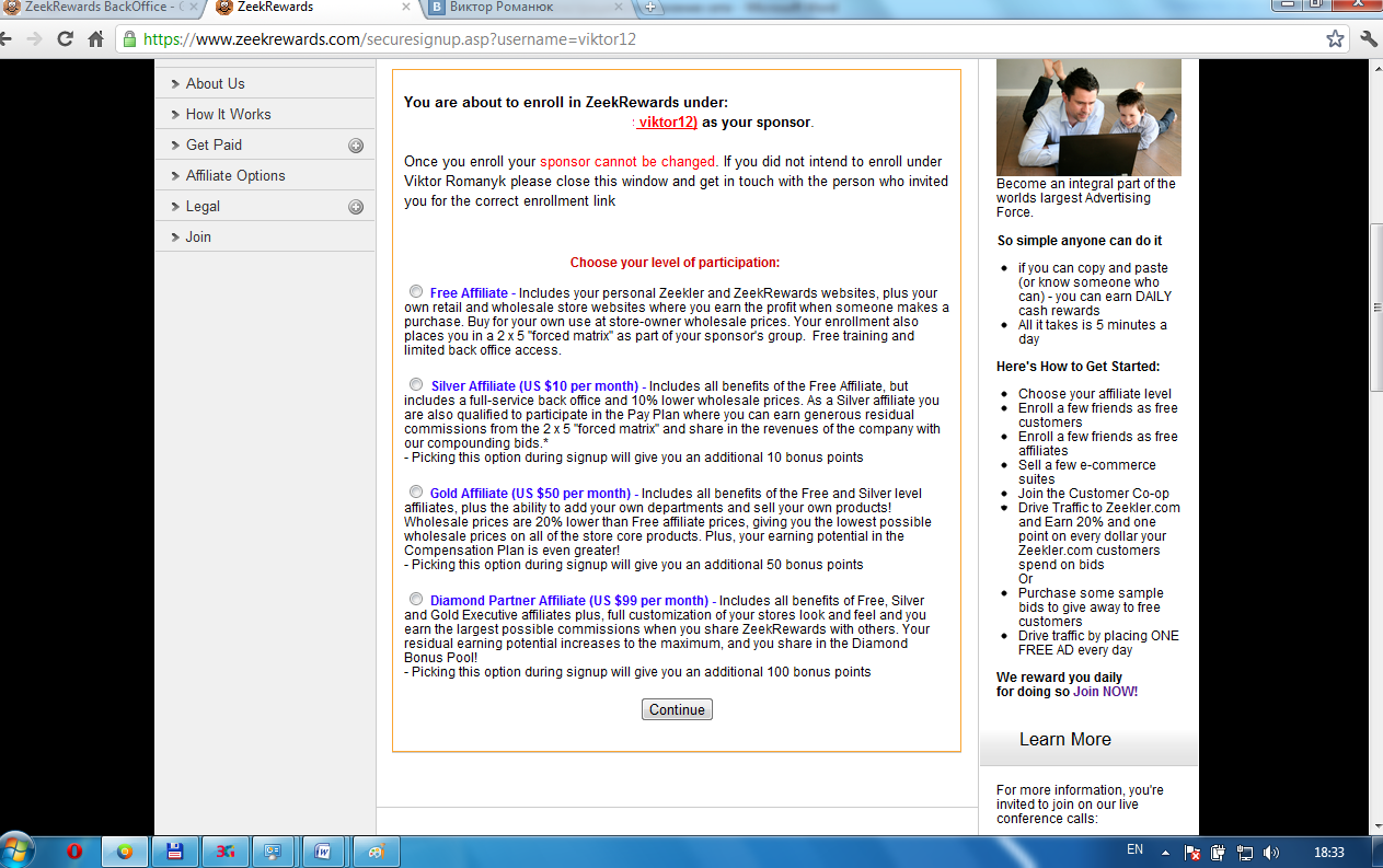 Мы заходим бесплатно (Free- первые 60 дней бесплатное членство) Для этого нужно выполнить следующие действия: Пункт 2- нажимем Free Affiliate