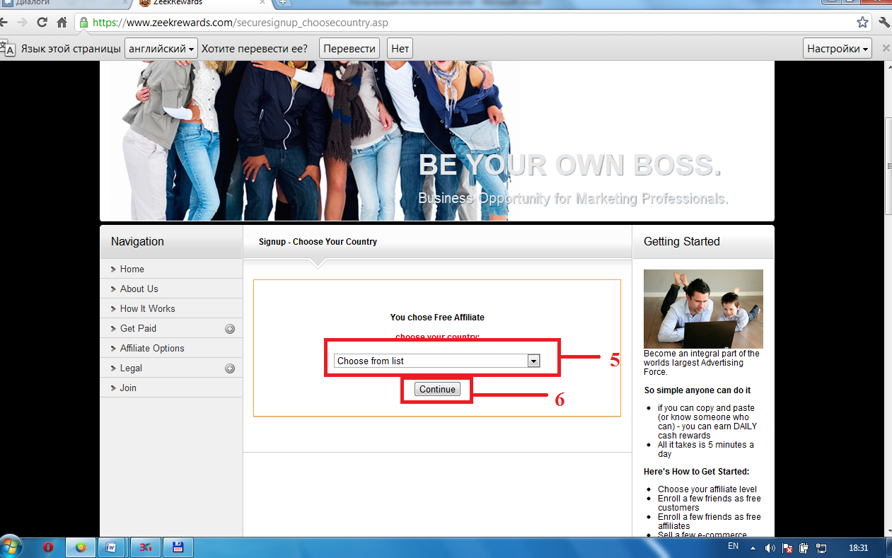 После проделанных данных у нас появится форма регистрации на сайте http://zeekrewards.com/. Заполняем указанные пункты поэтапно, на английском языке