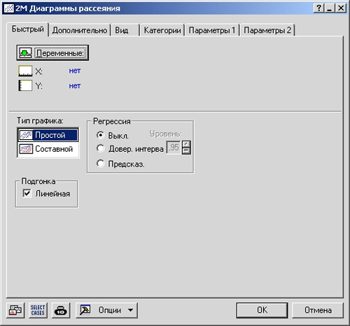 Оставьте остальные параметры по умолчанию. Нажмите на кнопку ОК - будет отображена диаграмма рассеяния. Для данного случая диаграмма примет такой вид: