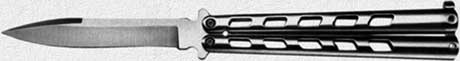 Однако существует тип ножа, в котором никакая иная рукоять, кроме тяжелого металла, просто неприемлема. Это чрезвычайно популярные сегодня раскладные балисонги, или «бабочки», как их прозвали за характерное устройство рукоятки, состоящей из двух одинаковых половинок, которые в собранном виде надежно прячут клинок, а в разложенном — столь же надежно фиксируют его в рабочем положении.