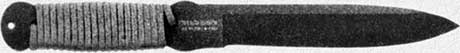 Несколько более сложной является составная рукоять, в которой на центральный стержень надета металлическая втулка той или иной формы, закрепляемая обыкновенно гайкой затыльника. Рукоятки подобного типа мы встречаем, как правило, у стилетов и тонких обоюдоострых кинжалов. Они весьма практичны и удобны, но тяжелы, что применительно к колющему оружию является скорее преимуществом, чем недостатком. В боевых кинжалах британских командос удачные пропорции и превосходный баланс стали залогом широкого применения этих изделий в качестве метательных, причем значительный общий вес гарантировал в случае некачественного броска хотя бы контузию противника.
