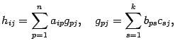 где Во-первых, в этом определении нужно обратить внимание на то, что важен порядок сомножителей, нужно знать, какой сомножитель первый, а какой -- второй. Во-вторых, нужно отметить, что произведение определено только в том случае, если число столбцов первого сомножителя равно числу строк второго. Если это условие не выполняется, то произведение не определено. В-третьих, размеры результата умножения определяются следующим образом: число строк результата равно числу строк первого сомножителя, а число столбцов результата равно числу столбцов второго сомножителя. Правило вычисления элементов произведения можно сформулировать следующим образом. Для того, чтобы вычислить элемент произведения, стоящий в Пример 14.3 Даны матрицы Решение. Рассмотрим произведение Результатом умножения будет матрица Находим элемент