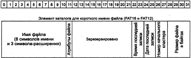 Самый первый в иерархии директорий (каталог) называется корневым каталогом (root directory). Каталог (директорий) это специальный файл на диске, состоящий из так называемых элементов директория. Размер элемента в MS-DOS 32 байта.