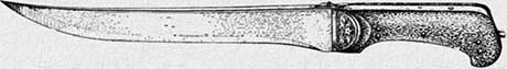 Упомянутые положительные моменты заключаются, как и у прямых рукояток, в удобстве метания клинком вперед и в легкости всевозможных переводов с обычного на обратный хват и обратно. Удобство рукоятки, сужающейся вперед, предопределено чисто анатомическими особенностями строения ладони, и наиболее замечательные разновидности стиля являются заодно устоявшимися и традиционными. Практически весь мусульманский мир вот уже много веков отдает предпочтение именно таким рукояткам. Вот турецкий ятаганный нож и персидский кард: