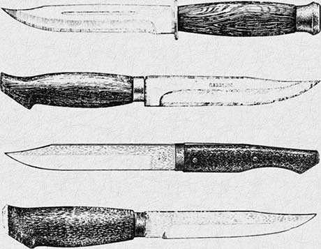 В настоящее время специалистами разных стран признано, что максимально удобной формой для действительно рабочего широкопрофильного ножа, прежде всего боевого, является прямая, соосная с клинком рукоять с небольшим «брюшком» и чуточку отогнутым вниз задним срезом, лишенным чрезмерно развитых крючков или фигурных головок. Среди привлекательной продукции известных оружейных фирм и отдельных мастеров мы находим множество чудесных образцов подобного рода. Их объединяет одно общее качество, которое японцы называют (применительно к любым предметам материального мира) словом «ваби» — то есть «красота целесообразности». Вещь, обладающая ваби, никогда не будет вычурной или подчеркнуто эстетичной. Ваби — это прелесть безыскусности и простоты, соответствия своему назначению. В полной мере такими качествами наделены классические финские ножи. Не зря большинство боевых ножей в той или иной степени следуют в русле данной традиции.