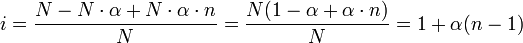 где solut. — данный раствор, nel. solut. — раствор неэлектролита той же концентрации, Tbp — температура кипения, а Tmp — температура плавления (замерзания). Смысл параметра ясен из определения каждого из коллигативных параметров: они зависят от концентрации в растворе частиц растворённого вещества. Неэлектролиты в растворе не диссоциируют, стало быть, каждая молекула неэлектролита образует в растворе лишь одну частицу. В свою очередь, электролиты в растворе под влиянием сольватации частично или полностью распадаются на ионы, образуя при этом несколько частиц на одну диссоциировавшую молекулу. Соответственно, и коллигативные свойства данного раствора (аддитивные величины) зависят от содержания в нём частиц (ионов) каждого типа из тех, которым принадлежат частицы, образовавшиеся в растворе в результате диссоциации исходной молекулы, — раствор представляется как бы смесью растворов каждого из типов частиц. Например, раствор хлорной извести содержит три типа частиц — катионы кальция, хлорид-анионы и гипохлорит-анионы. Итак, изотонический коэффициент показывает, насколько в растворе электролита больше частиц по сравнению с раствором неэлектролита аналогичной концентрации, и связан со способностью вещества распадаться в растворе на ионы, то есть, со степенью диссоциации. Если формульная единица или молекула содержит n ионов (или атомов при полярных связях, в растворе превращающихся в ионы), количество исходных молекул равно N, а степень диссоциации соединения — α, то количество диссоциировавших молекул равно N·α (при этом образуются N·α·n ионов), а общее количество частиц в растворе равно ((N — N·α) + N·α·n). Изотонический же коэффициент равен отношению: