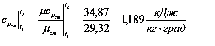 Средняя мольная теплоемкость при постоянном давлении в заданном интервале температур: