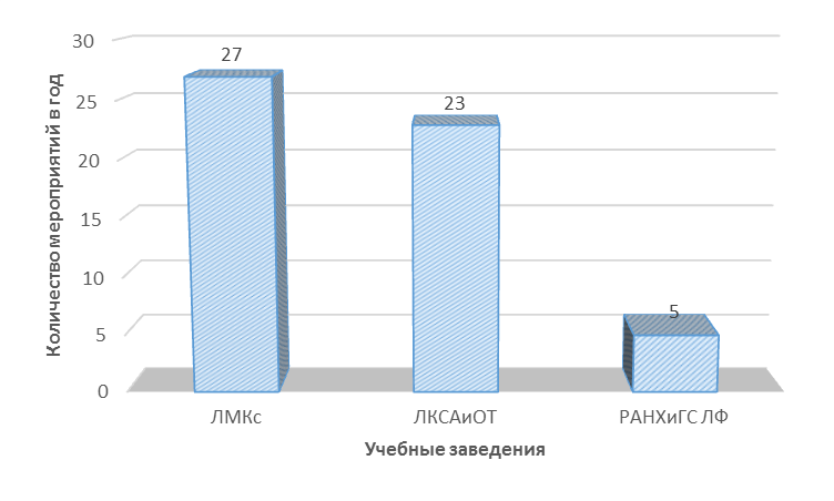 Рисунок 4 – Количества мероприятий, проводимых Студенческими советами учреждений СПО и ВПО г. Липецка