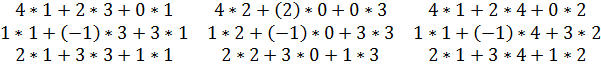 A= ( Решение: 1) А2x3 * B3x2 = C2x2
